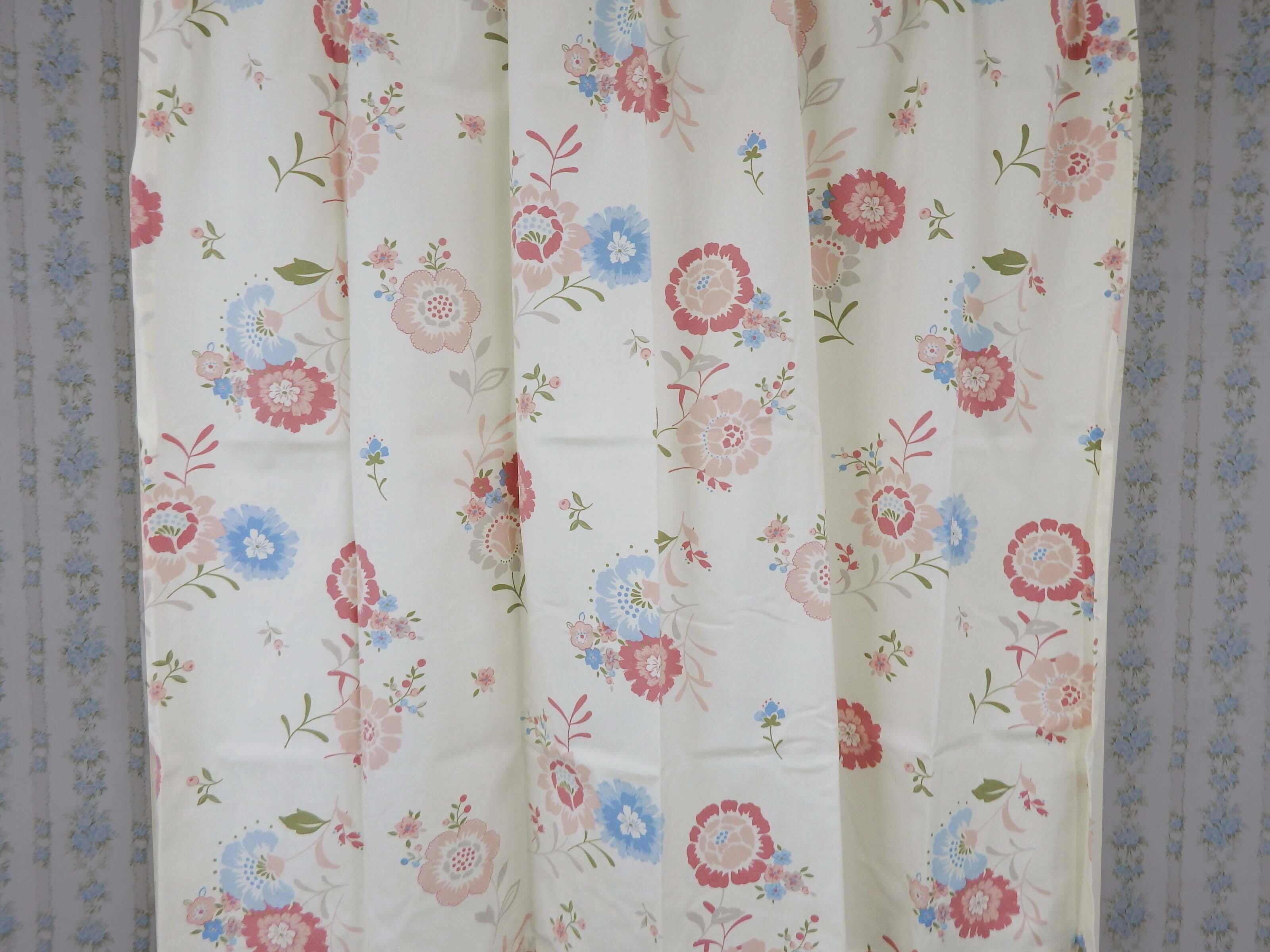 カーテン 100×178cm 2枚入 かわいいフラワー柄 アイボリー色 K11-26