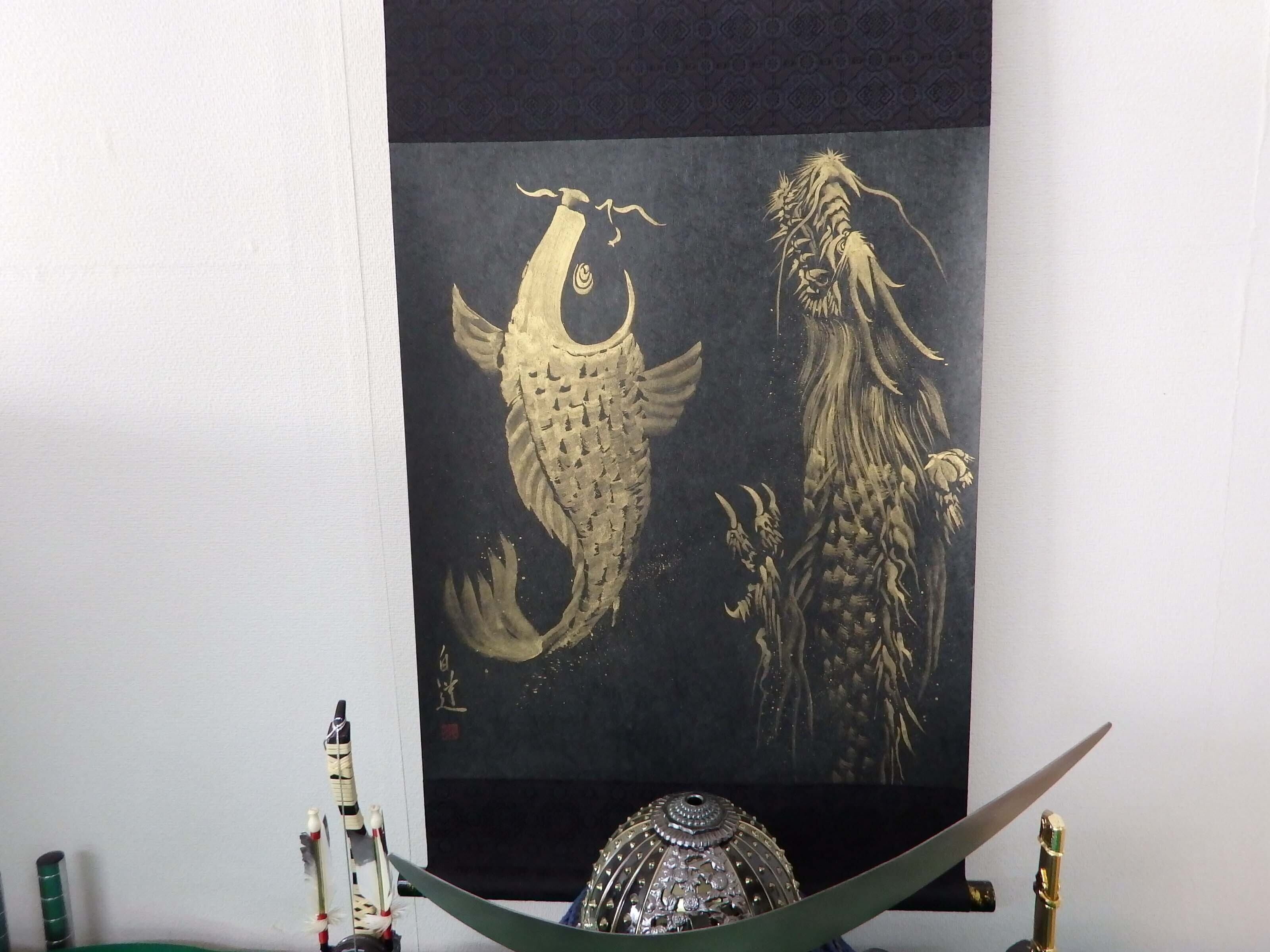 商品名 オリジナル着用兜と龍鯉の掛軸